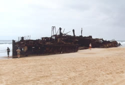 Wer Fraser Island besucht, kommt unweigerlich auch an einigen Highlights des "Seventy Five Mile Beach" vorbei, so z.B. dem Wrack der "Maheno". |