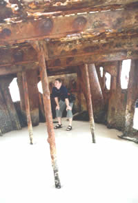 Das Wrack sinkt immer weiter in den Sand hinein, vielleicht ist es irgendwann mal einfach weg. Tja, und es rostet natürlich vor sich hin. Das Betreten des Wracks ist übrigens erlaubt, allerdings auf eigene Gefahr. |